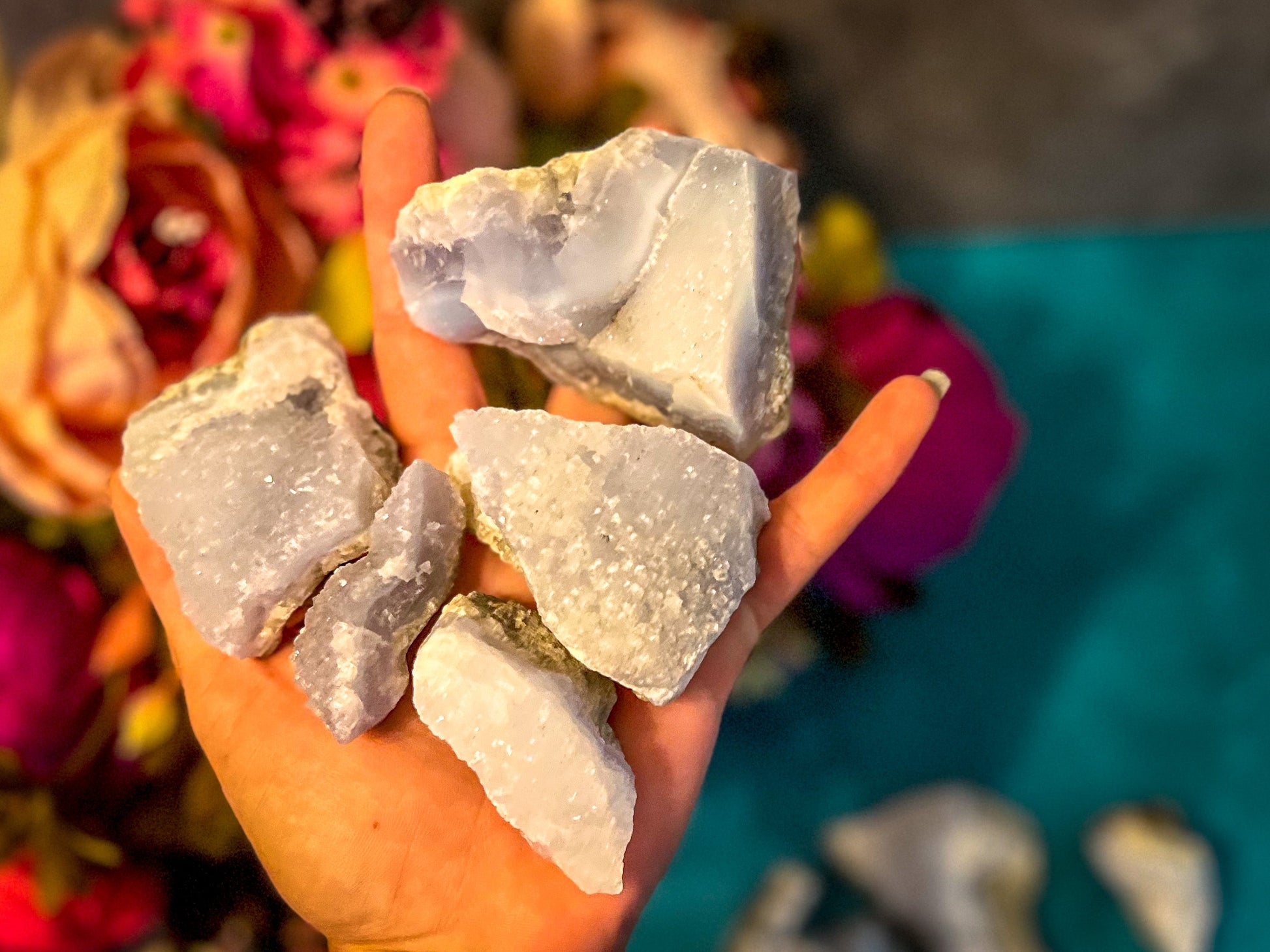 Check out these Raw Blue Lace Agate Crystals! This listing is for 1 Lb (450 grams) of a mixed selection of these. Each photo shows a representation of what one of these groups may look like.
