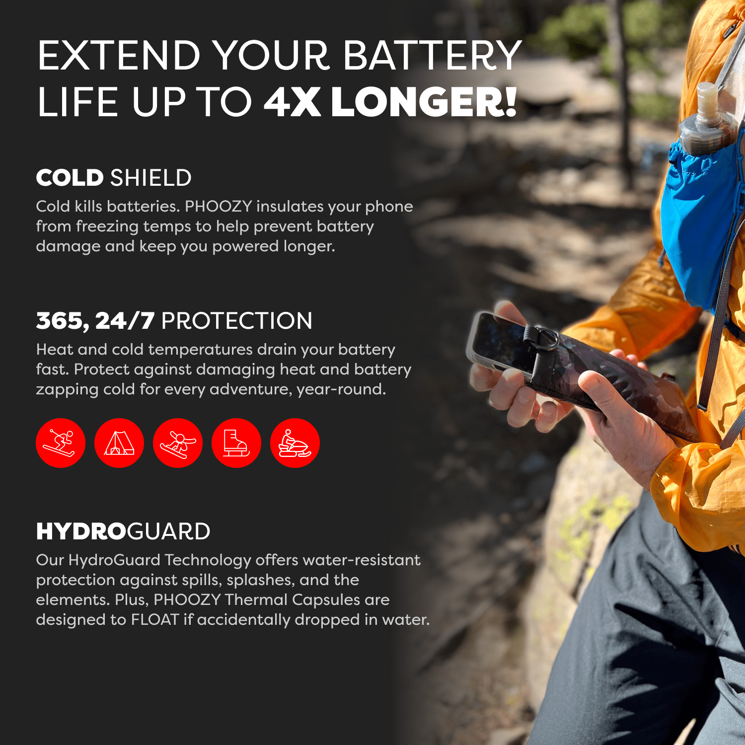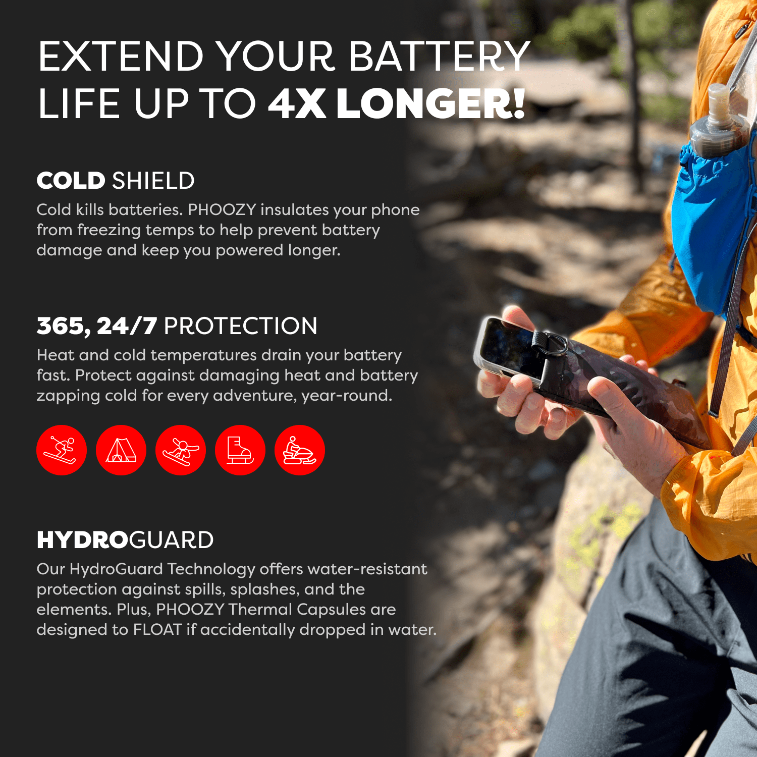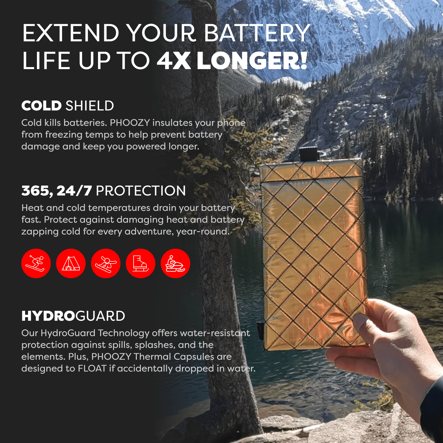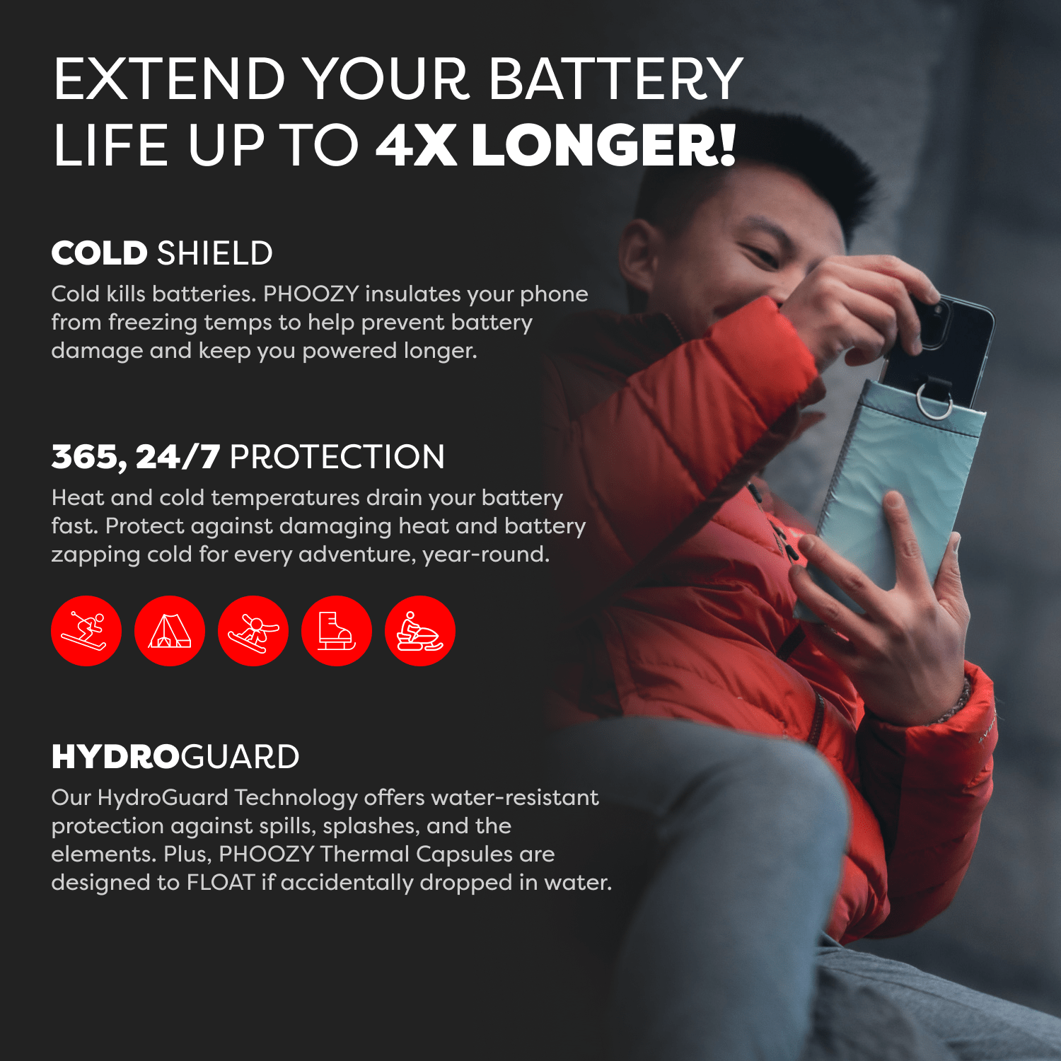 The Apollo II + Antimicrobial Thermal Capsule is a powerful germ-fighting phone case that protects your device from extreme cold and heat, extends battery life up to 4X, delivers military-grade drop protection, and yes - it floats!