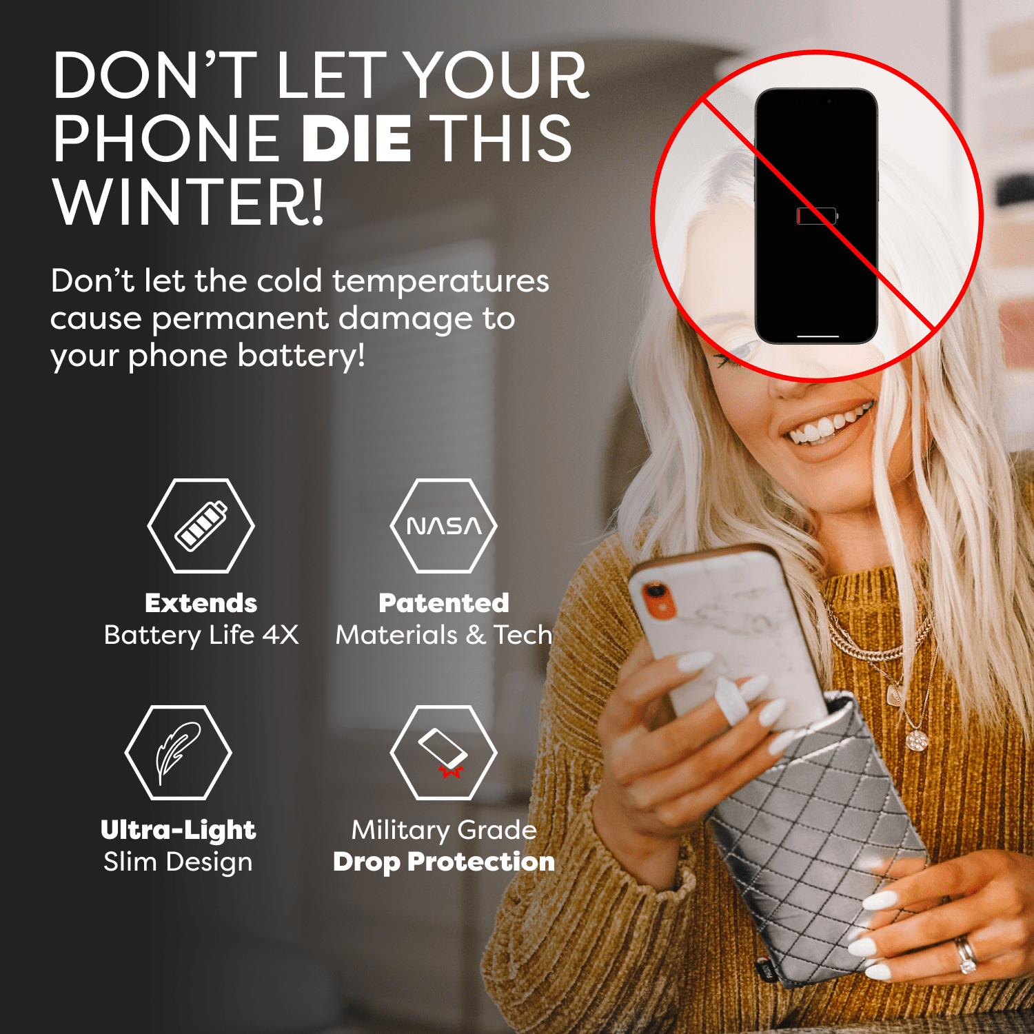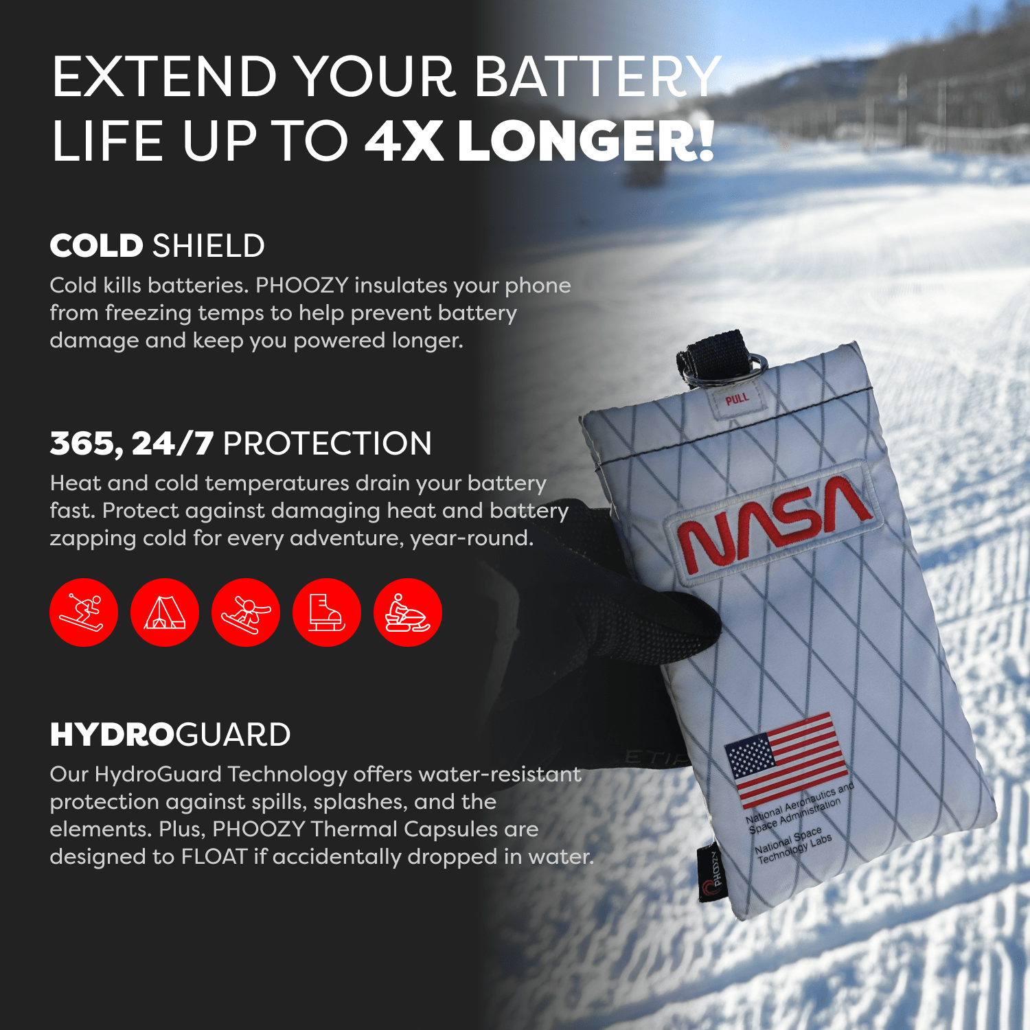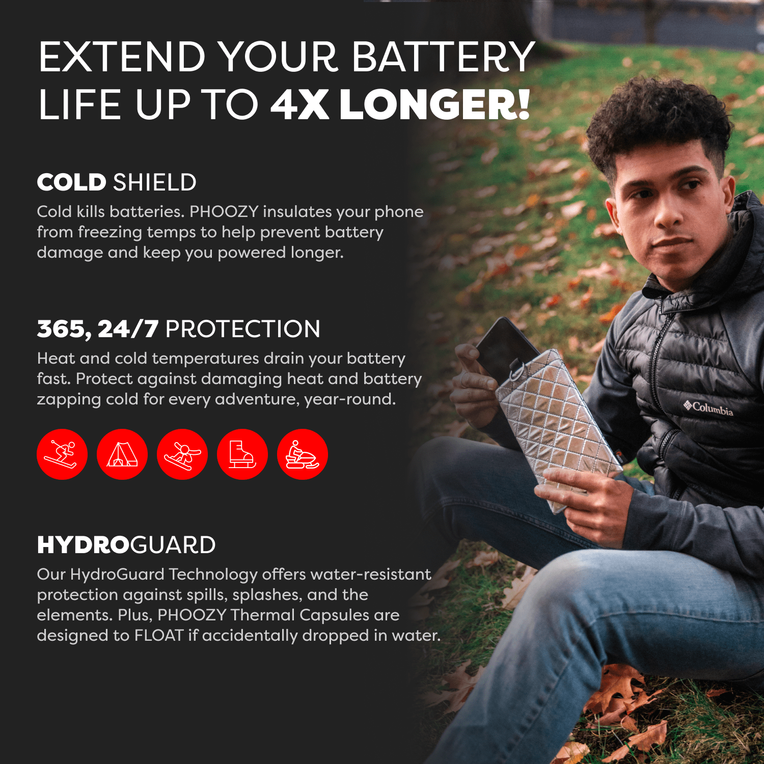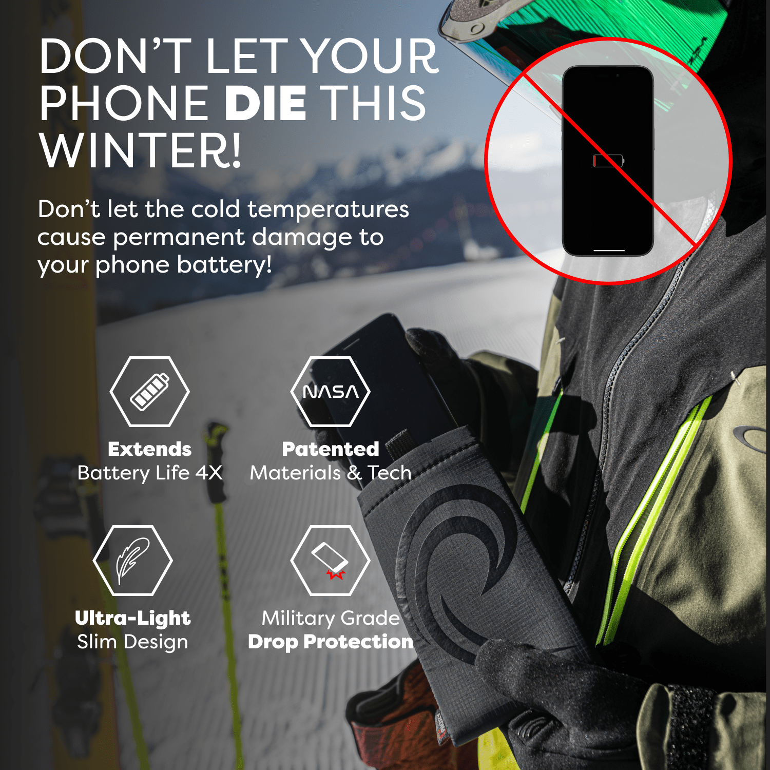 The Apollo II + Antimicrobial Thermal Capsule is a powerful germ-fighting phone case that protects your device from extreme cold and heat, extends battery life up to 4X, delivers military-grade drop protection, and yes - it floats!