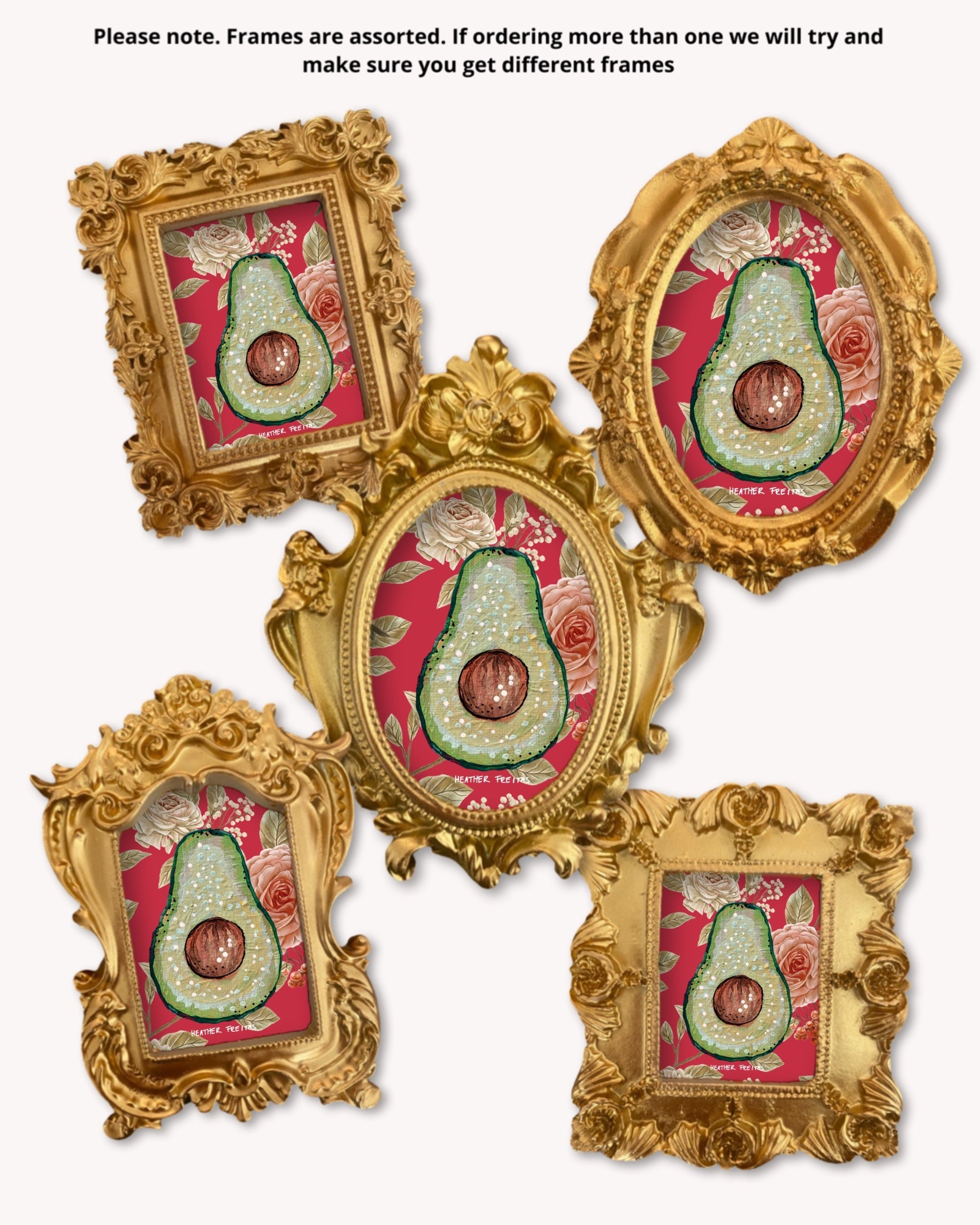Please note frames are assorted and range from 3.3 to 4.8 inches in length or width. If you order multiple framed mini prints we will try and make sure you get an assortment of frame types.