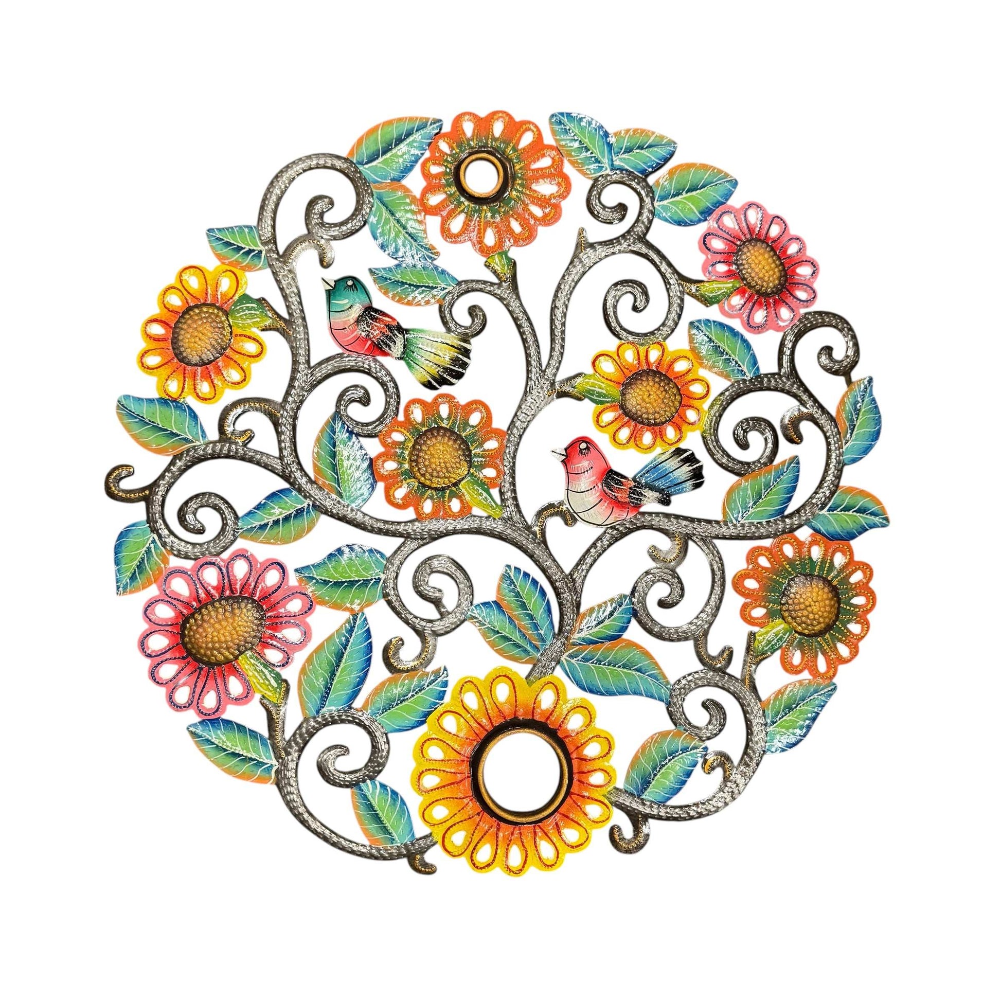 One of the most celebrated Haitian art forms, steel drum art is always a winner! Each piece is hand crafted from recycled 55 gallon drums using only a hammer and a few small tools that resemble railroad spikes. Each piece is a true work of art!