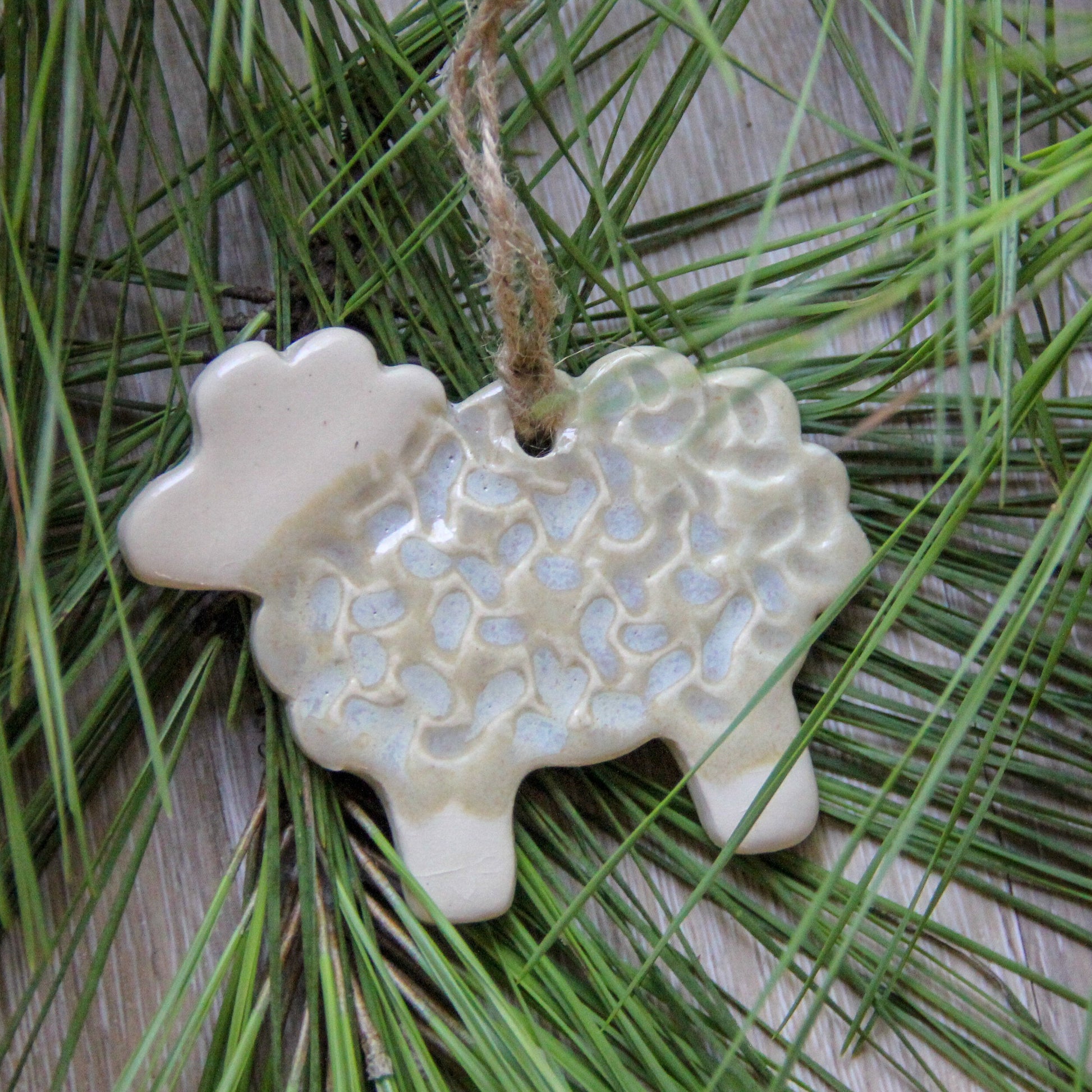 Get your hands on one of these adorable Ceramic Sheep Ornaments, complete with imprinted sheep wool and a white face and feet. Perfect to hang on the tree, tie to a gift, or hang in your window. These precious, handmade ornaments are are sure to make you and your loved ones smile!