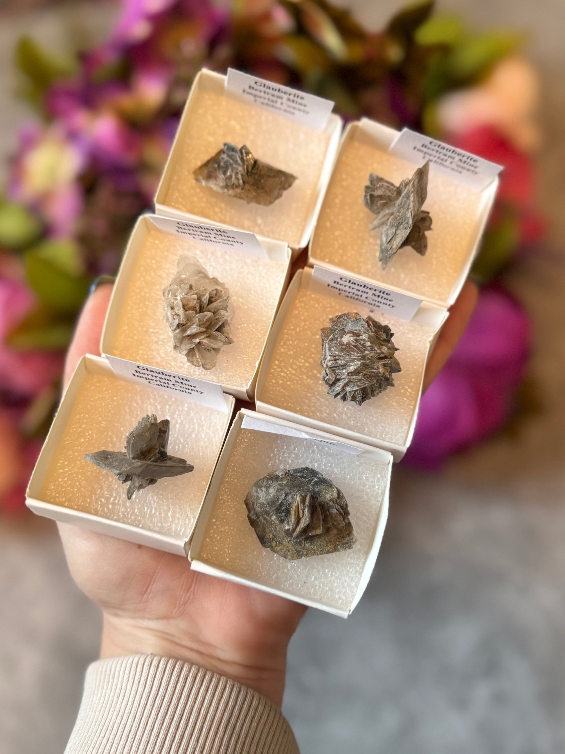 Glauberite Crystal Collection – Flowers, Stars & Pineapples ✨🌿🌟