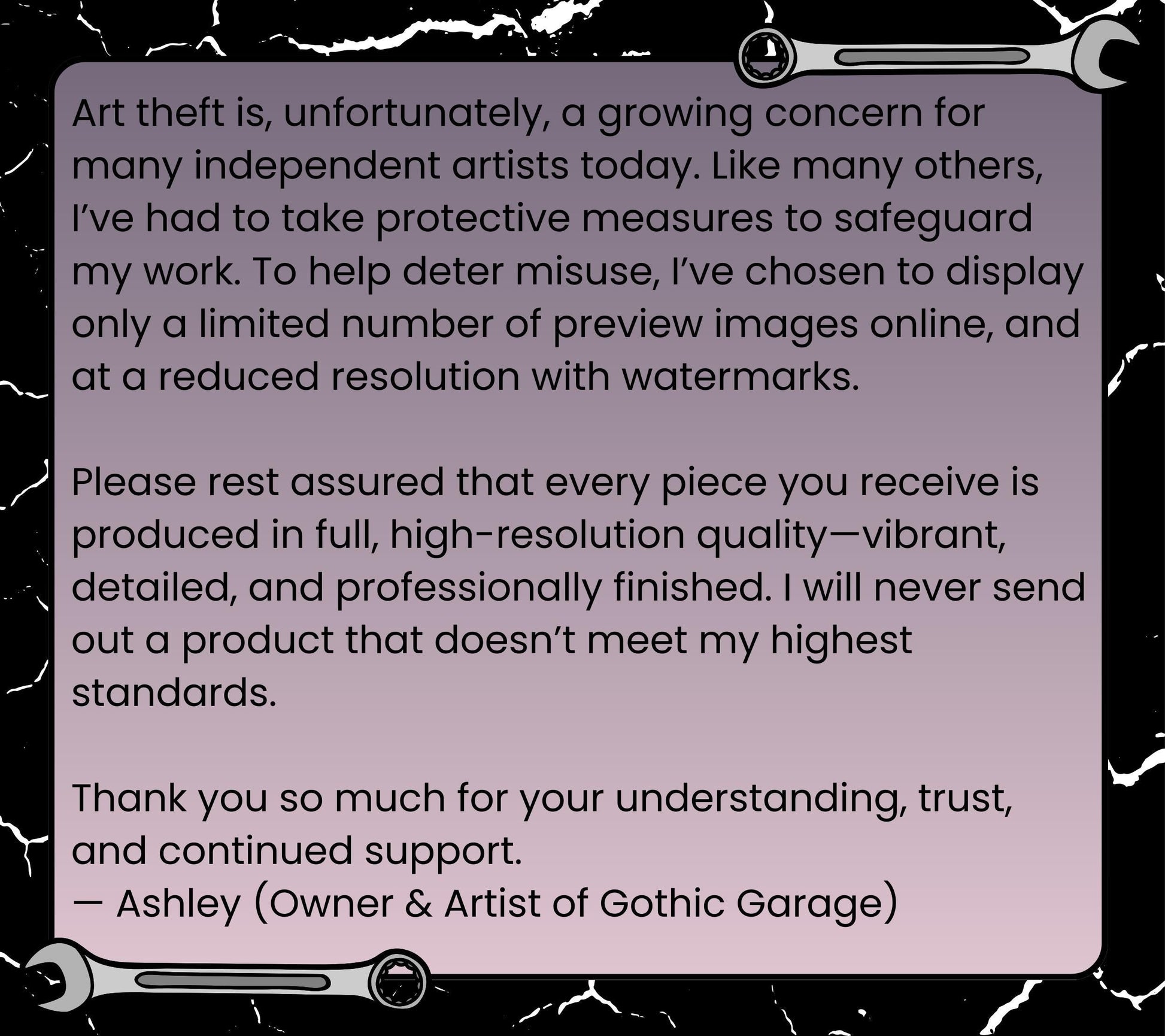 Gothic Garage OWNS ALL RIGHTS TO ALL STICKER DESIGNS, AND DOES NOT GIVE THE RIGHTS TO REDISTRIBUTION