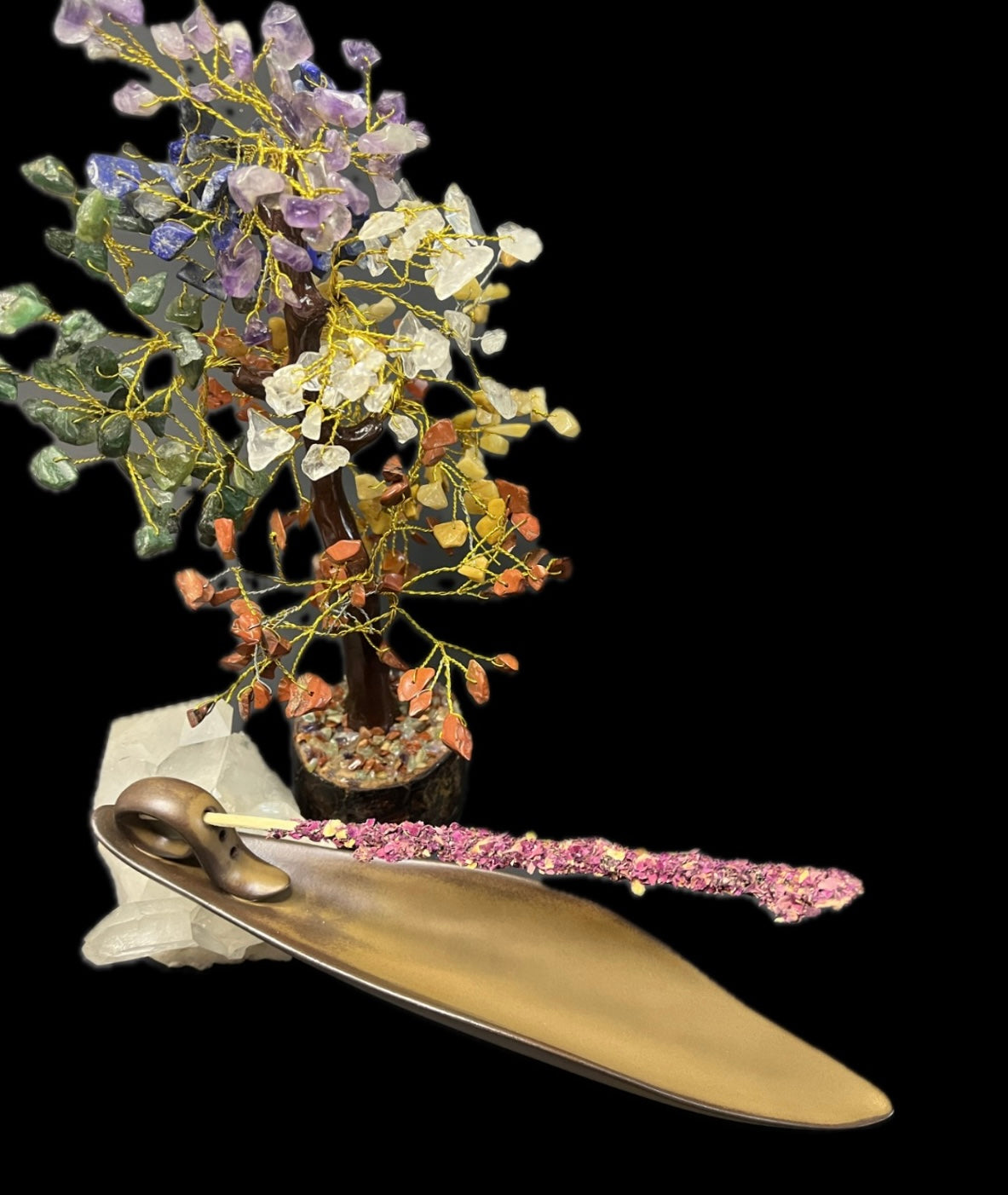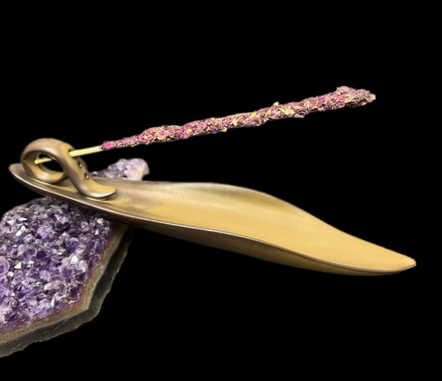 Our long-leaf ceramic holder, thoughtfully designed with three different-sized holes to accommodate various types of incense sticks while elegantly capturing their ash. This versatile holder not only serves as a practical solution for incense burning but also doubles as a platform for arranging Triangles, Pyramids and 7 Day tablets. Embrace the harmony of form and function as you enhance your spiritual space with this exquisite ceramic holder, perfect for both practical use and aesthetic appeal