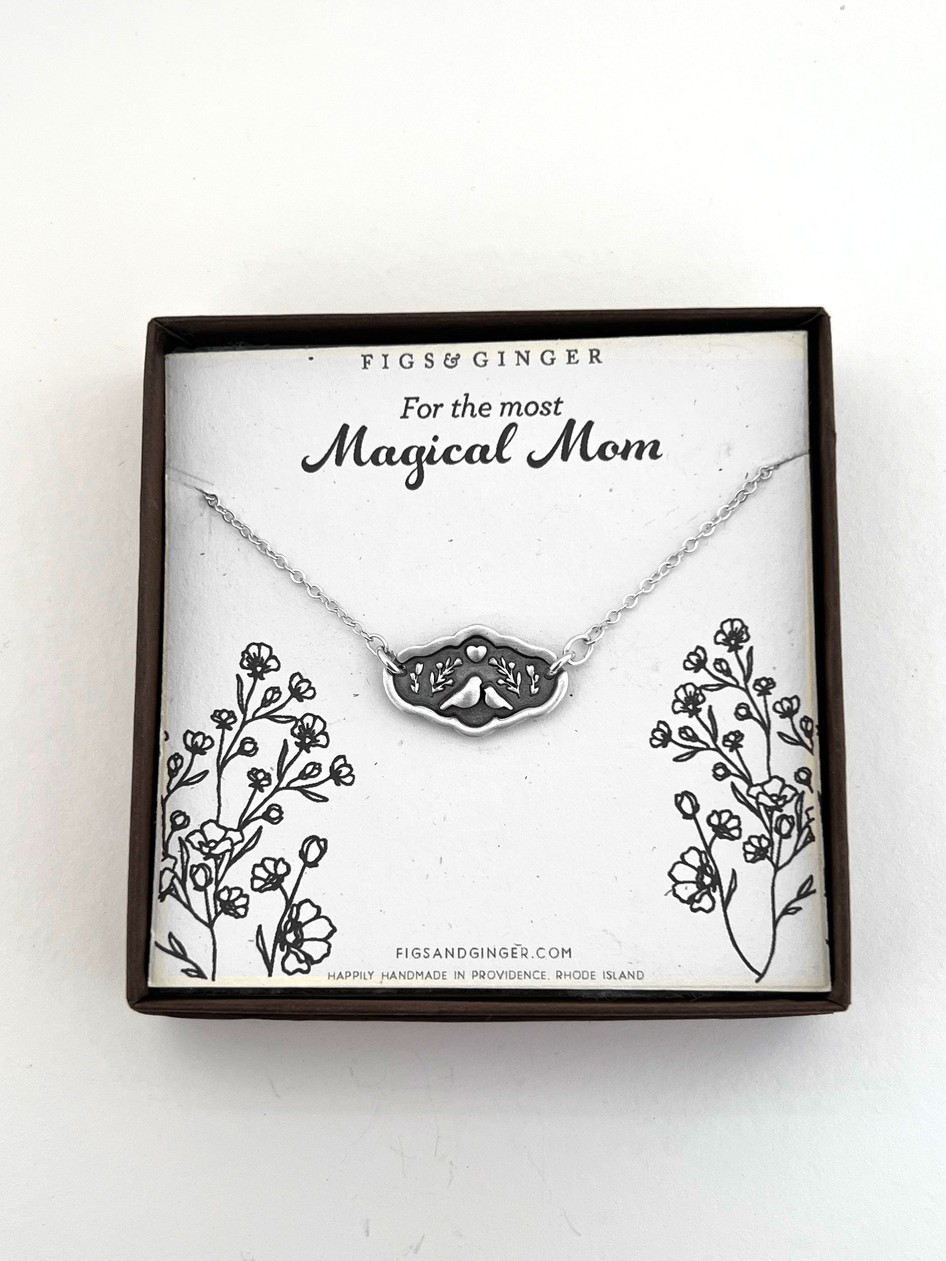 Celebrate the beauty of motherhood with this sterling silver Mother Bird Necklace. Handcrafted with love, this necklace features a detailed mother bird with her baby birds and can be customized with up to three baby birds to represent your family. Each necklace is made with eco-friendly, recycled sterling silver and finished for a timeless, heirloom-quality piece. This is the perfect personalized gift for new moms, birthdays, Mother’s Day, or any occasion to honor the love between a mother and her children.