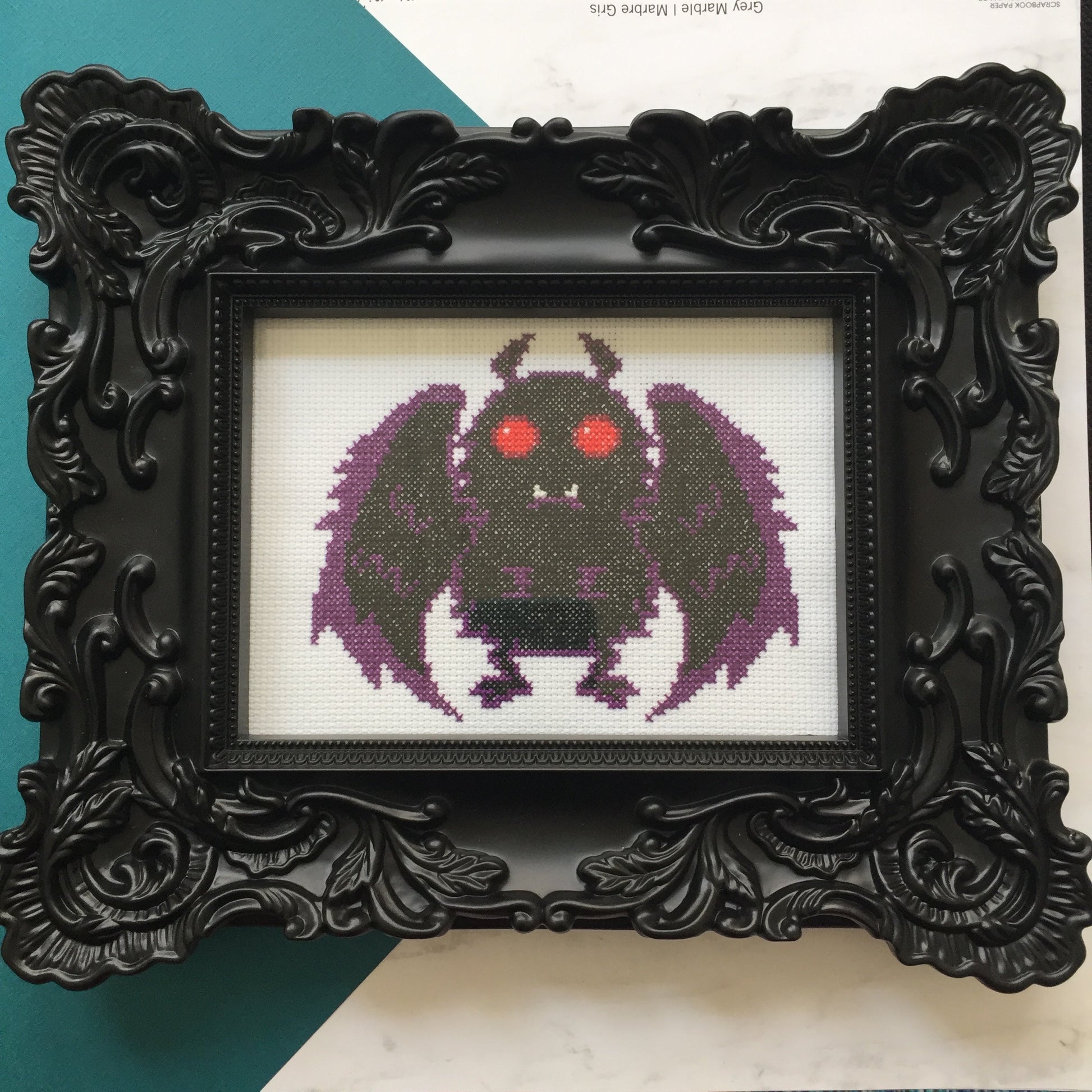 This DIY counted cross stitch kit features Mothman from our Cryptozoology line.