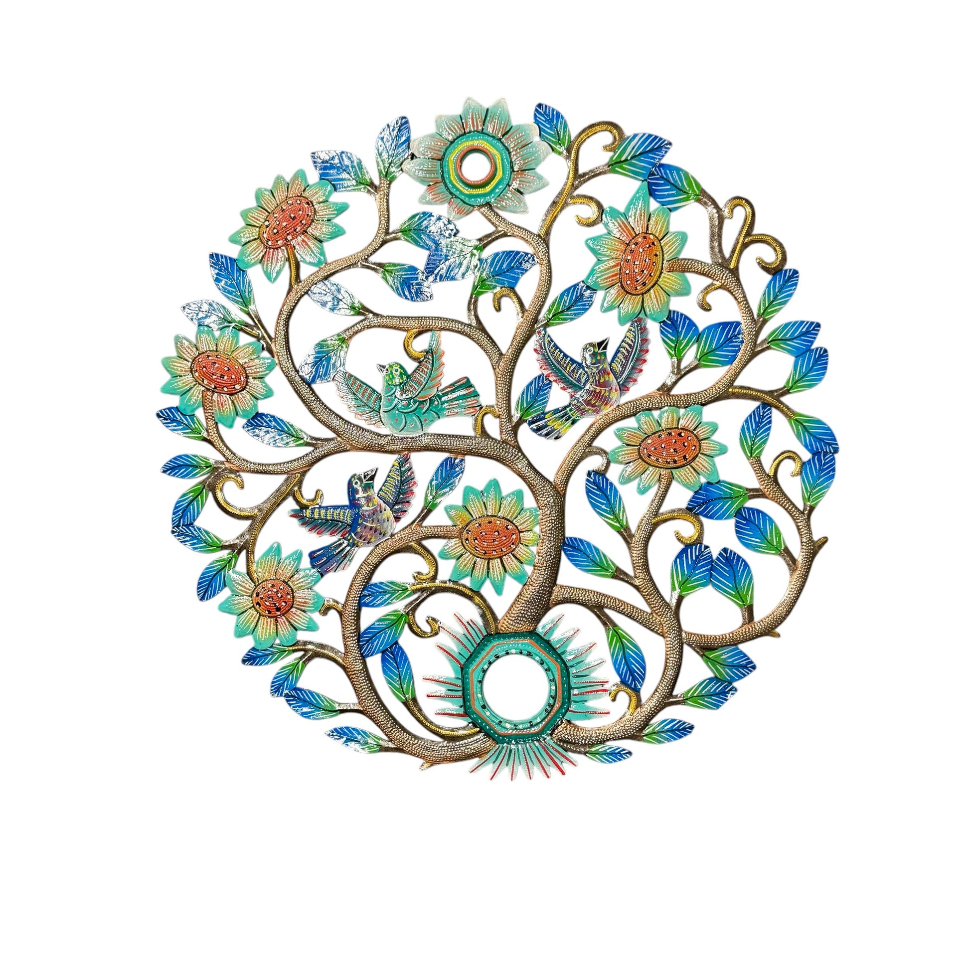 Since the 1950's Haitians have been flattening 55 gallon oil drums and using these steel canvases to cut, pierce, and bend intricate images and sculptures. This 34” wide metal piece is a perfect addition to any home and makes a great gift too!