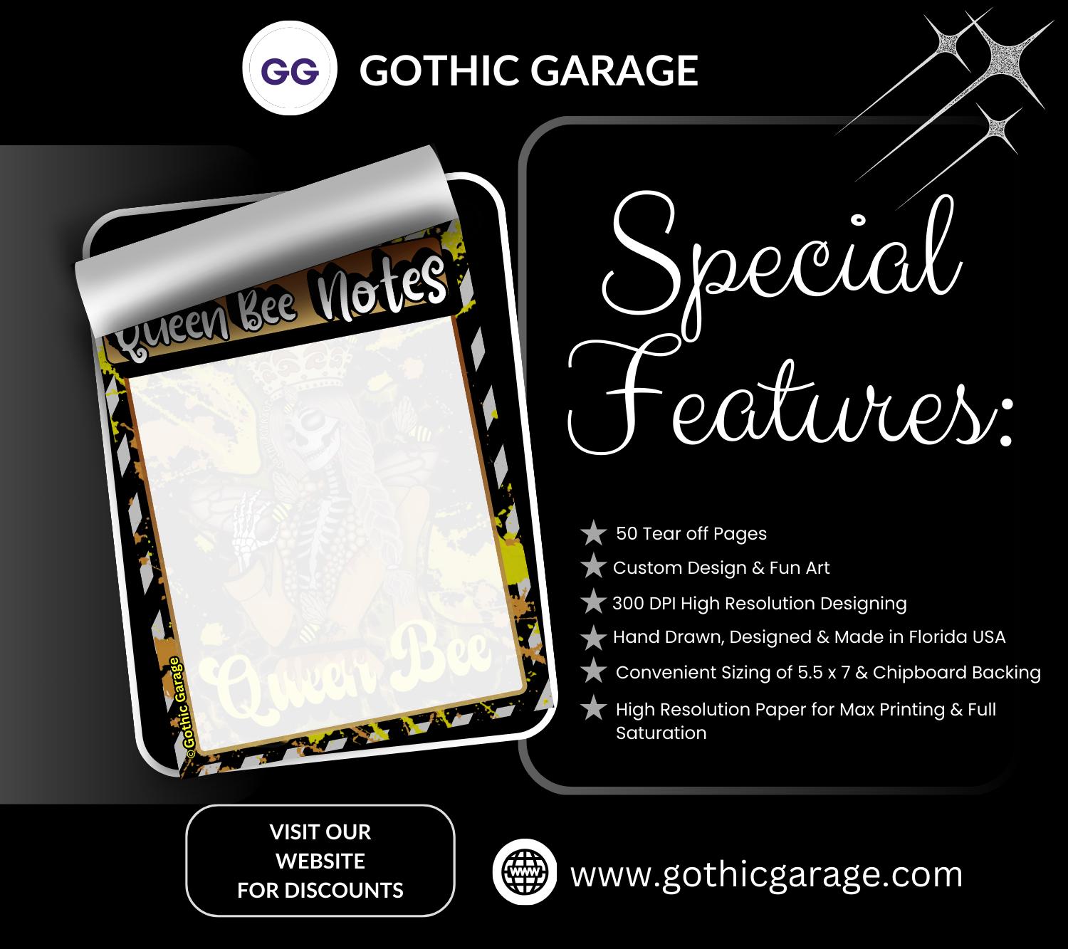 Add a little buzz to your gothic stationery collection with this bold & badass notepad—because even queens need to jot things down!