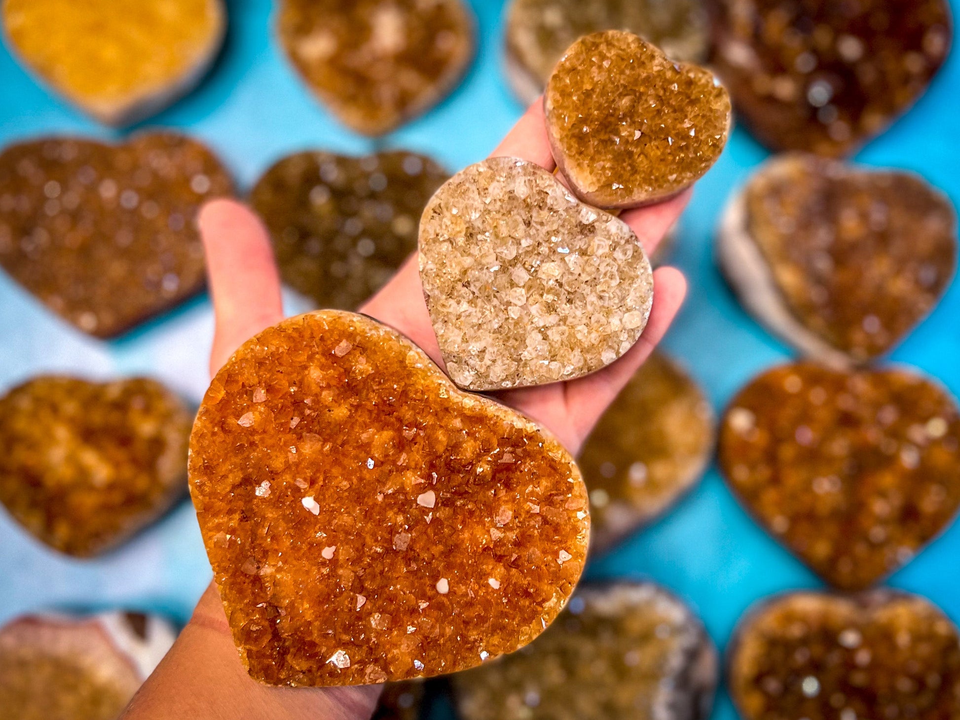 Raw Citrine Hearts, Ethically Sourced from Uruguay
