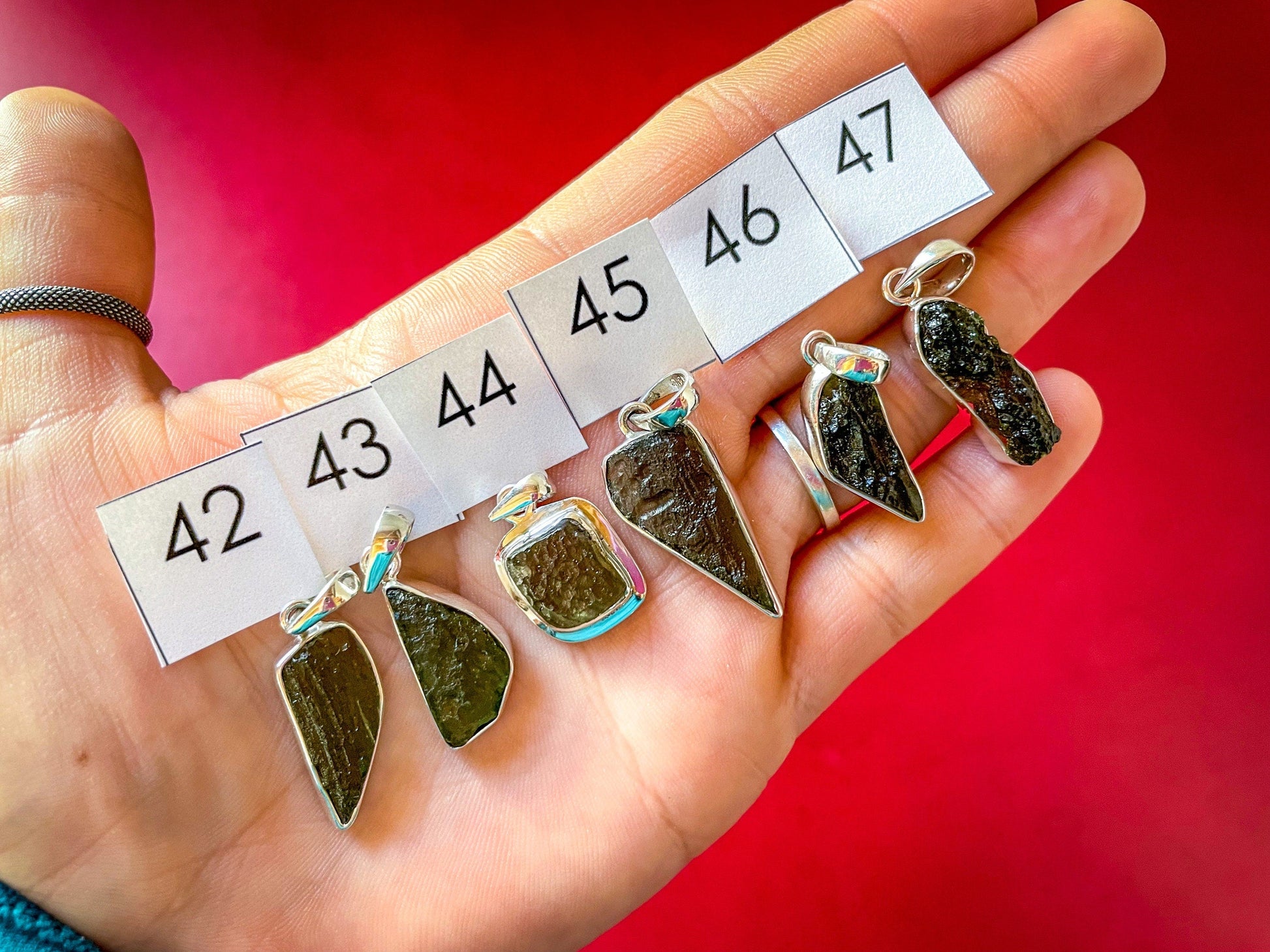 Really pretty, dainty moldavite pendants! One look at Moldavite and there's no question it is a stone of greatness, etherically carved of spiritual fire and destined for purpose. This mysterious green talisman is star-born, formed from nature's violent meteoric impact with Mother Earth. Etched by force and flame as it fell from the heavens Moldavite returned to the earth's surface transformed, a glass of amazing delicacy and grace ready to serve humankind.