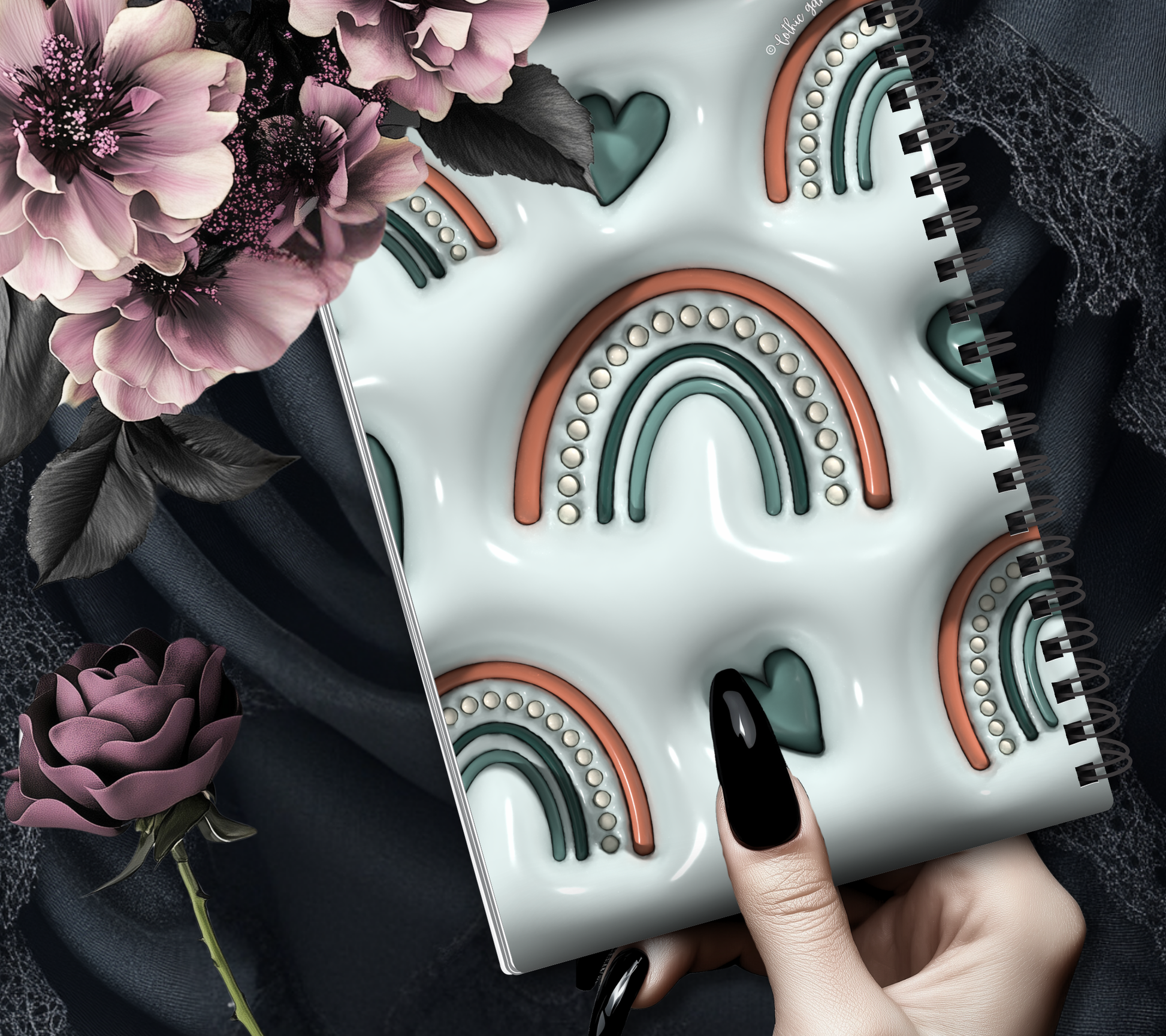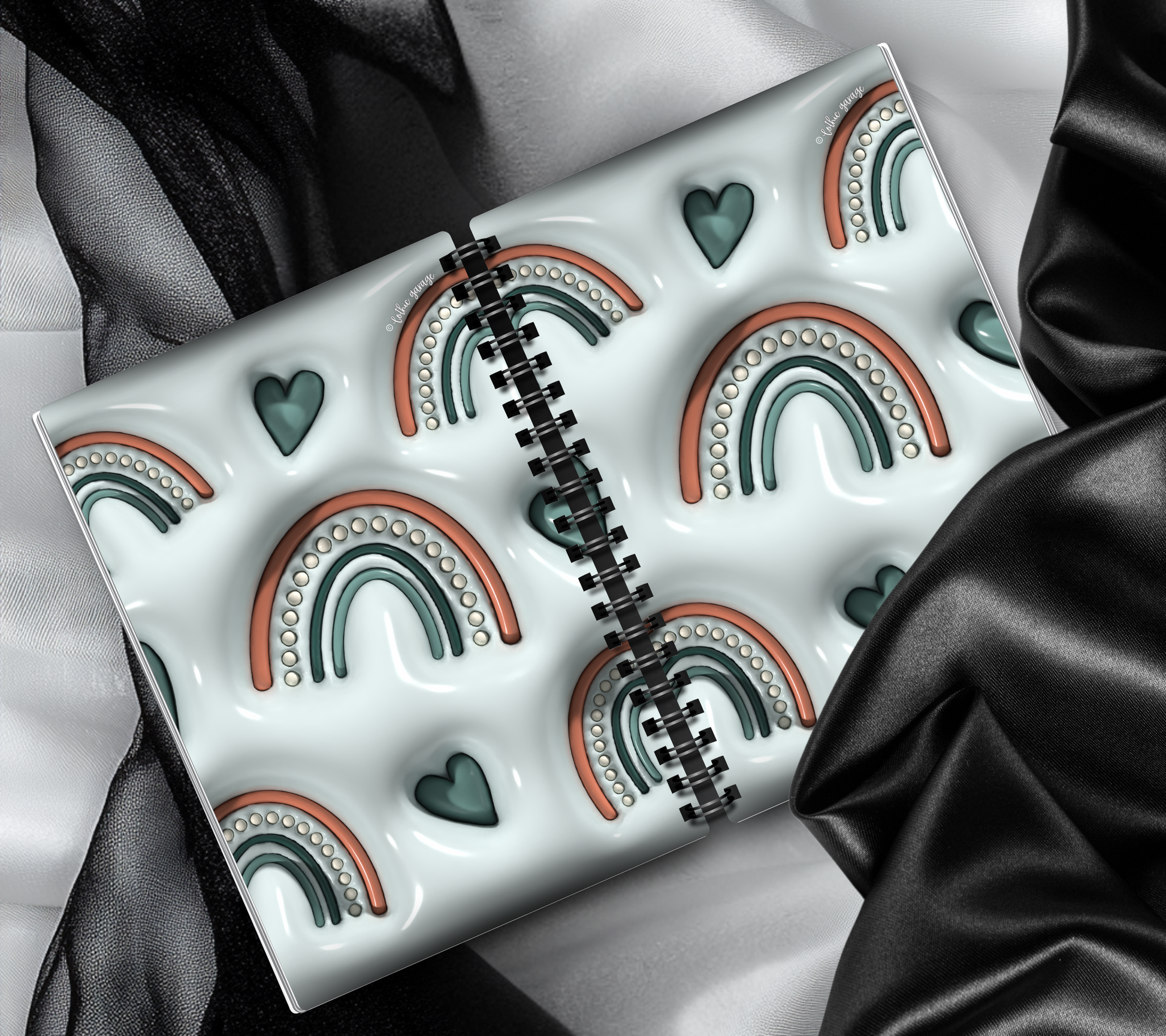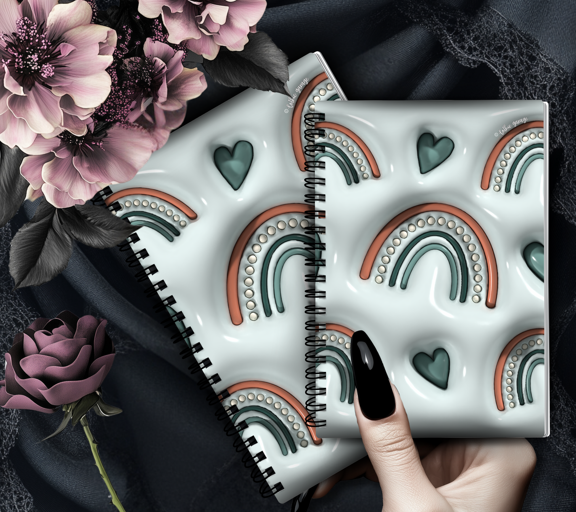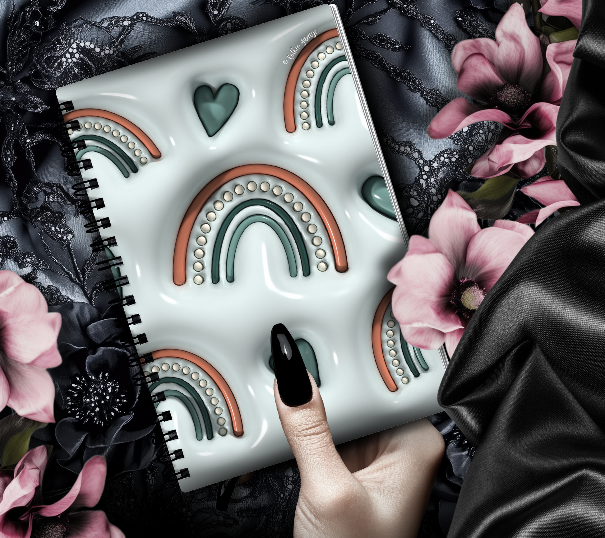 - 24 or 48 double-sided pages bursting with 3D illustrated retro rainbows and hearts cover, radiating positivity and nostalgia.