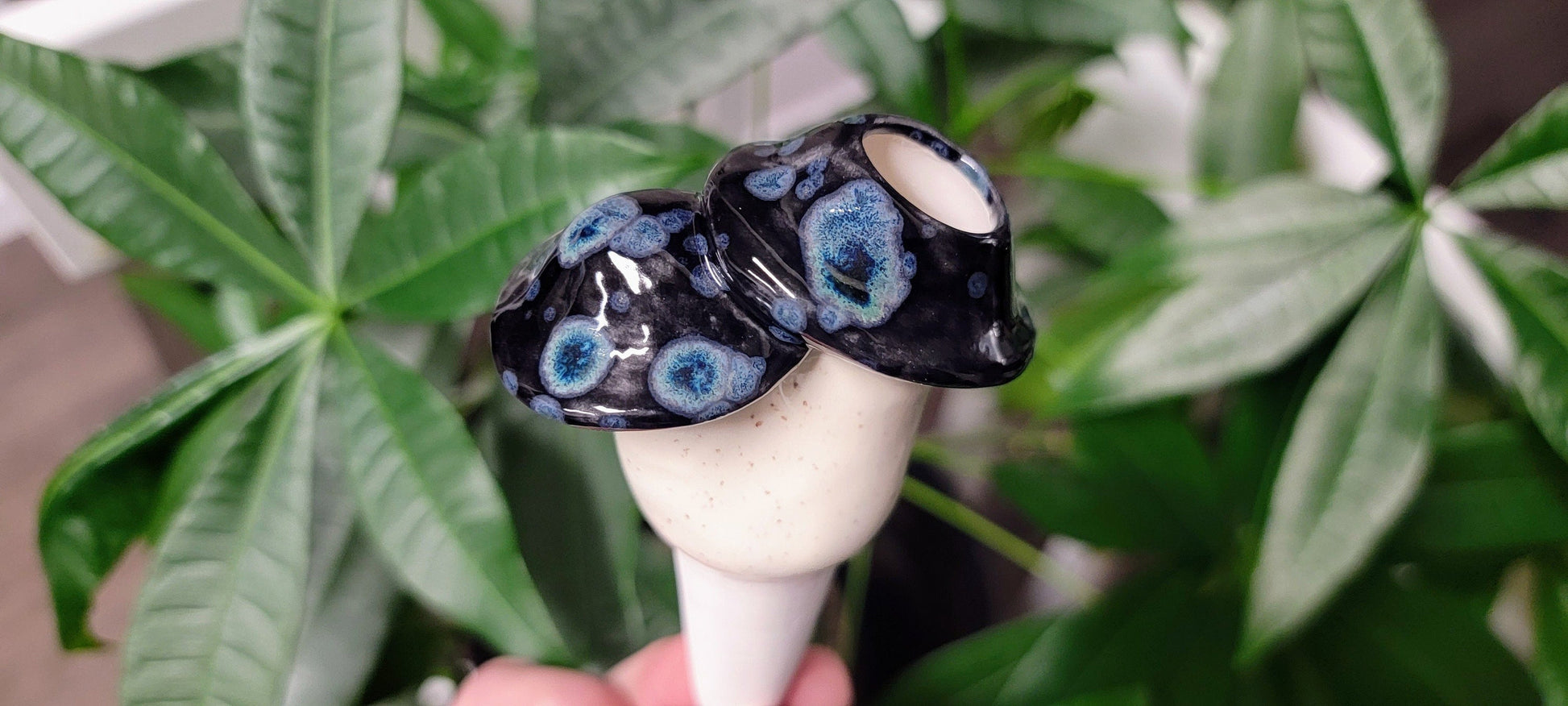 Never had a green thumb? Try it out! Get healthier plants and add a splash of whimsy to your plant care routine using ancient tech. This nifty mushroom helps reduce fungus gnats, encourages root growth, and keeps plants hydrated for up to a week between fill-ups. Enjoy greener, shinier plants without added hassle for yourself, or show you care with the perfect gift for your favorite plant-lover. This is the smallest of our mushroom series; we also offer medium and large!