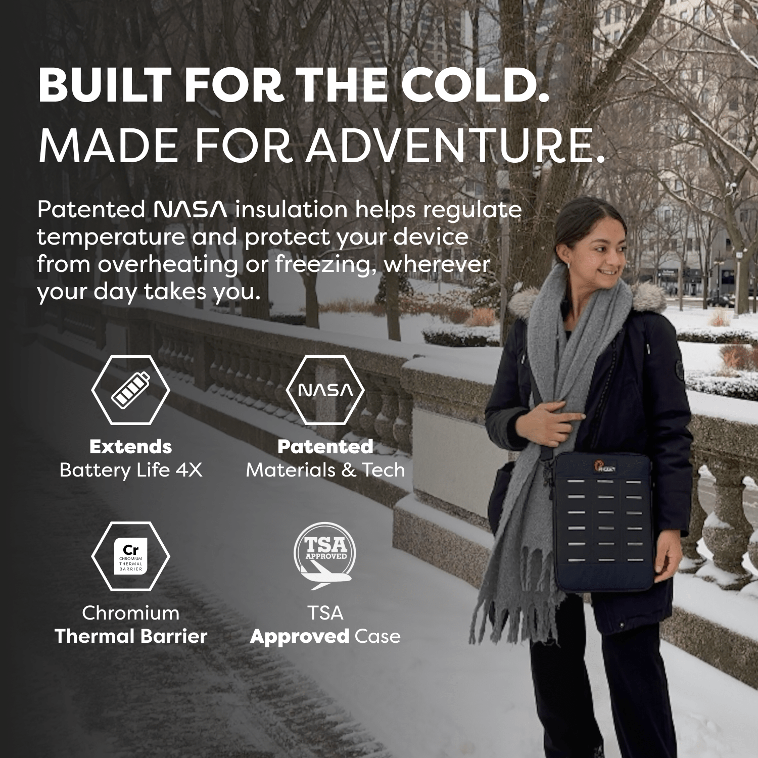 Introducing the only Tablet/Laptop protection that helps prevent overheating in the sun and insulates from the cold to extend battery life while also providing an IP55 water-resistance rating and military-grade drop protection.