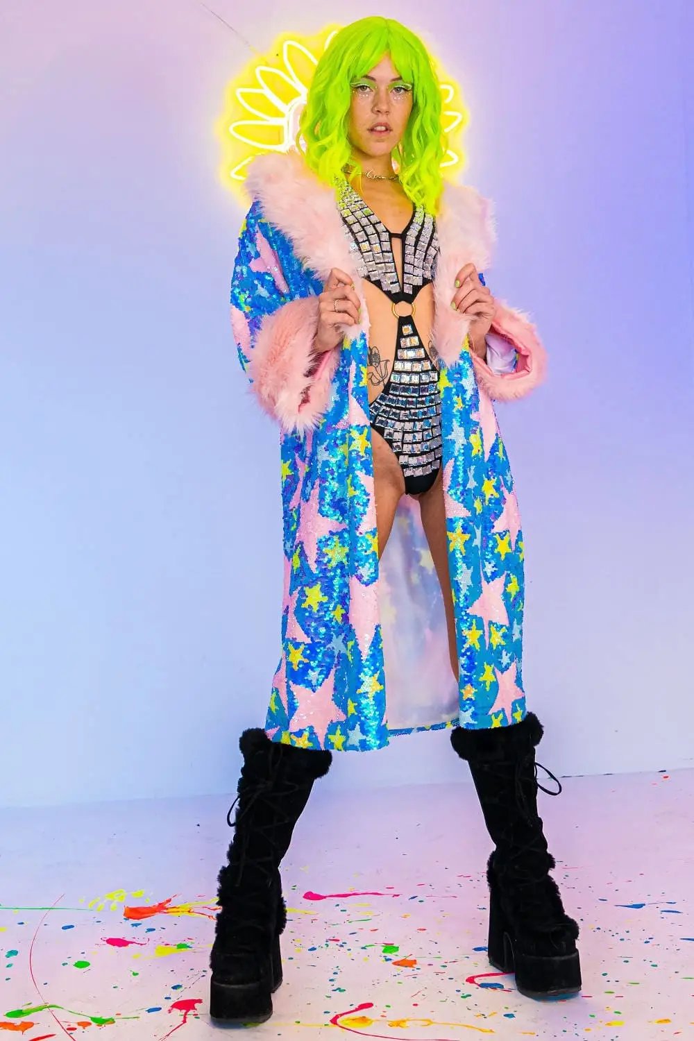 But that's not all - the Star Struck Jacket also features a luxurious faux fur removable collar, giving you the option to switch up your look depending on your mood. Whether you want to go for a bold, eye-catching style or a more understated, chic vibe, this jacket has got you covered.