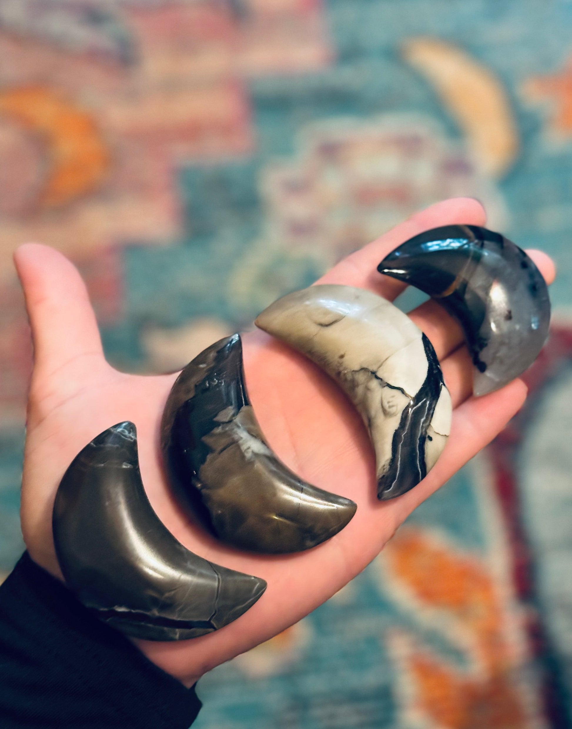 Volcano Agate Crescent Moons – Earth’s Glow, Carved in Stone