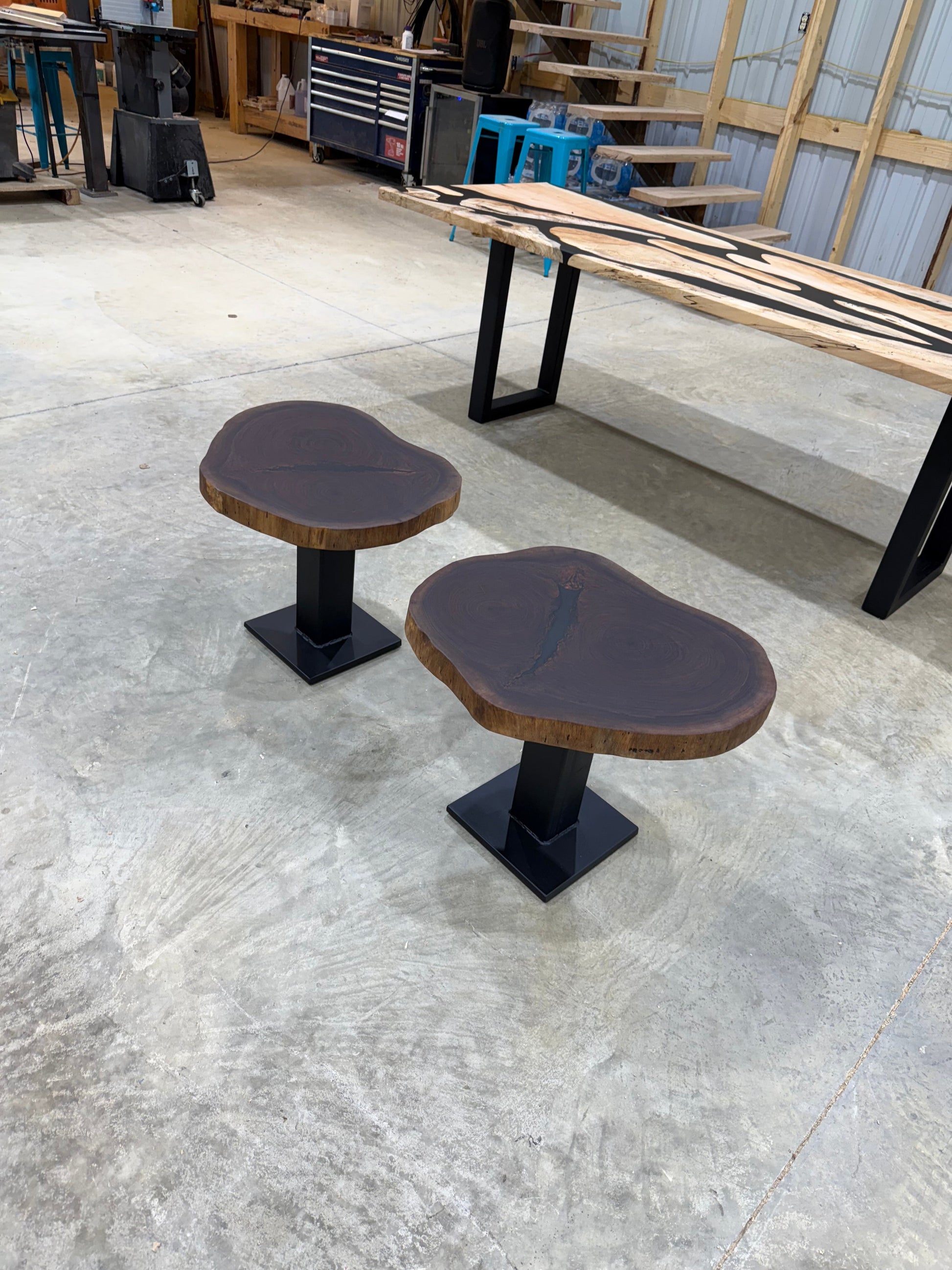 These two are available now! 18 inches tall, 20-24 inches wide. The bases are made from thick steel, so they are very heavy and sturdy.