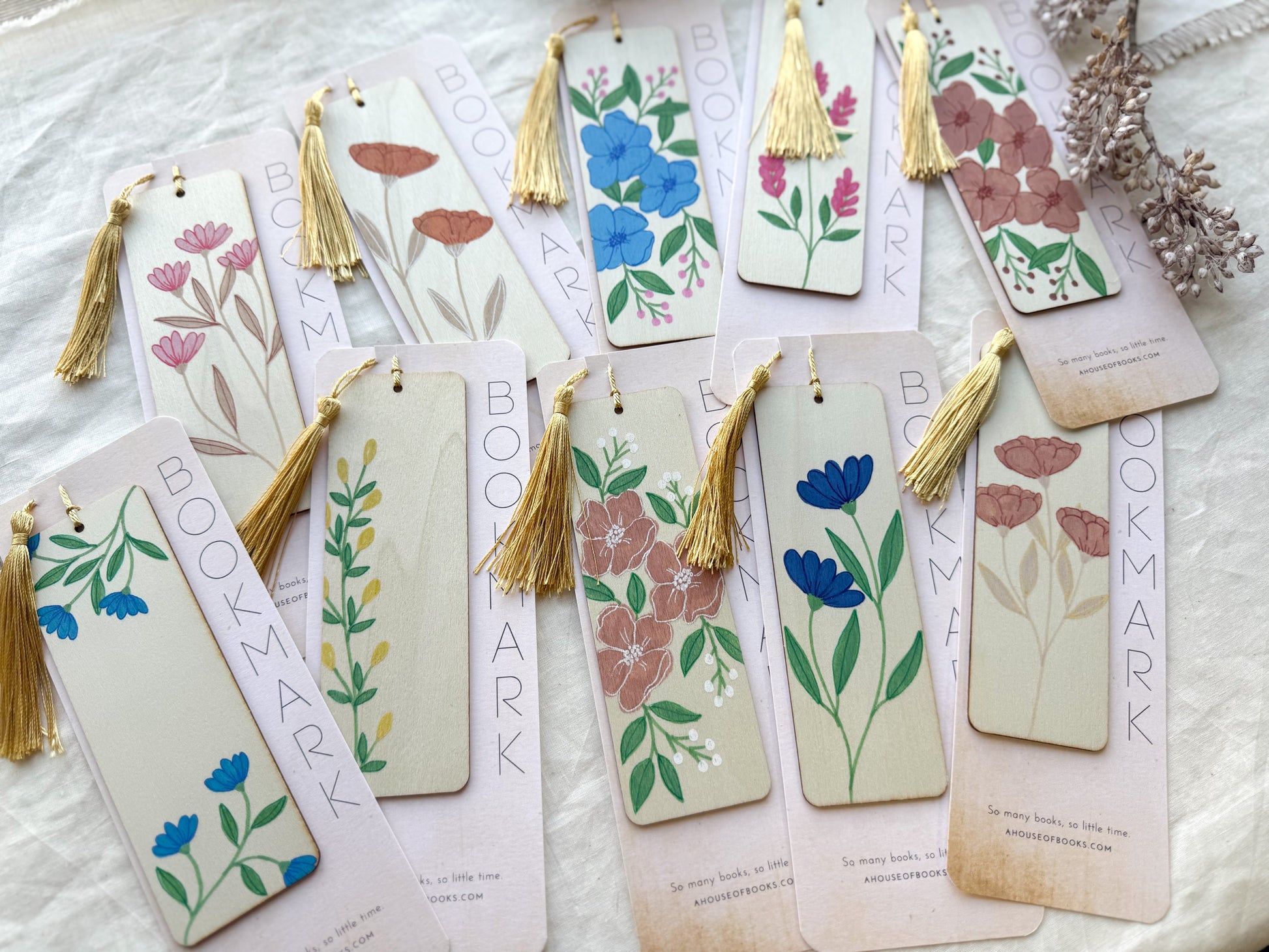 These wooden bookmarks are individually drawn by our in-house artist giving you a unique and one of a kind bookmark. Bookmarks are randomly selected with gold tassel.